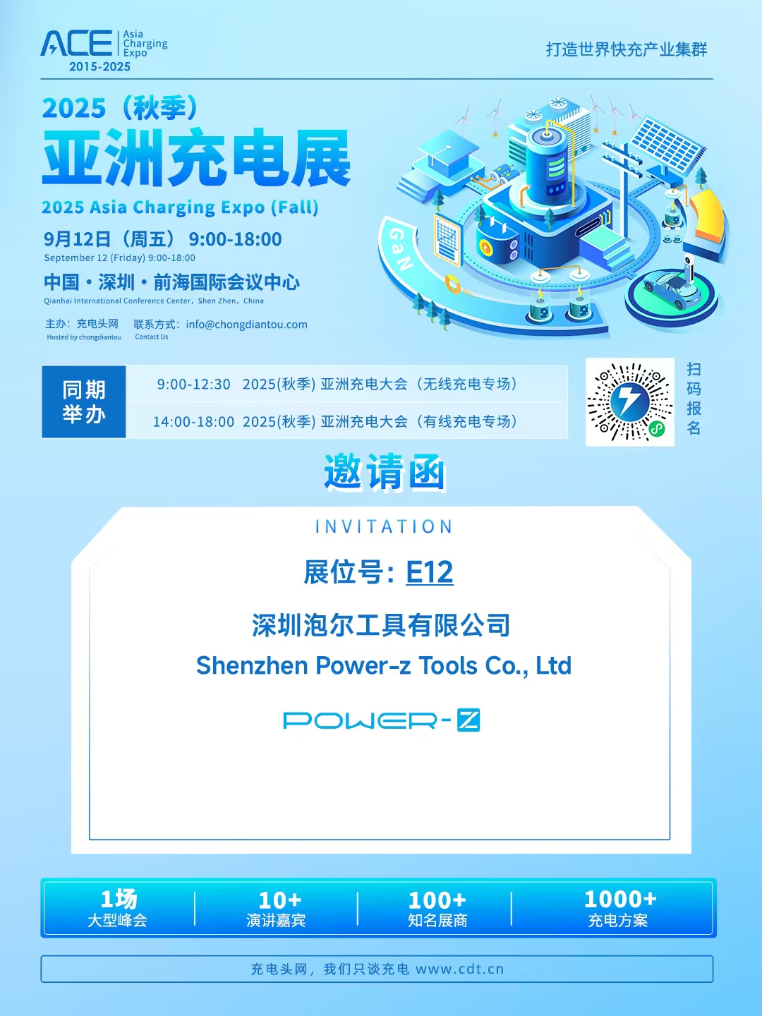 2025 (秋季)亚洲充电展将于 9月12日 在深圳前海国际会议中心举办!Power-z已正式确认参展,将亮相本次亚洲充电展现场,欢迎您莅临展位。