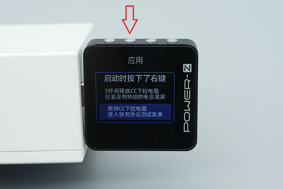2、选择保持CC下拉电阻(进入快充协议测试菜单),然后按确认键进入测试。