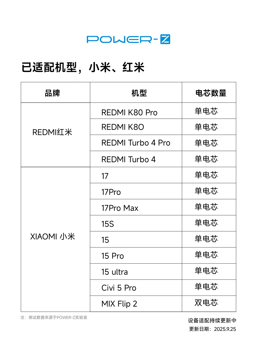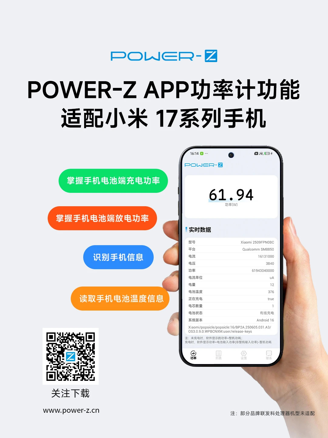 POWER-Z APP功率计成功适配小米 17系列手机,更多机型持续适配中