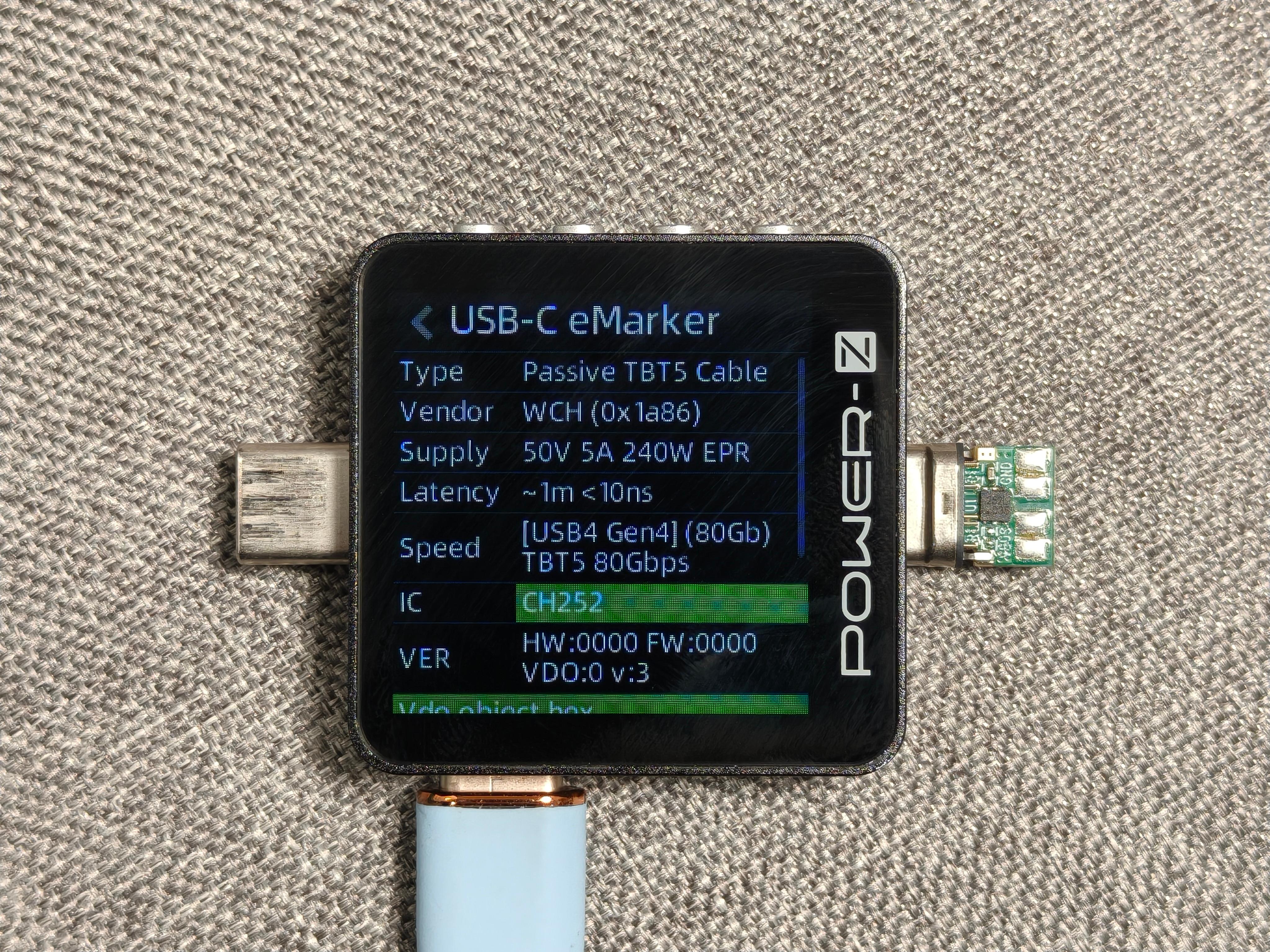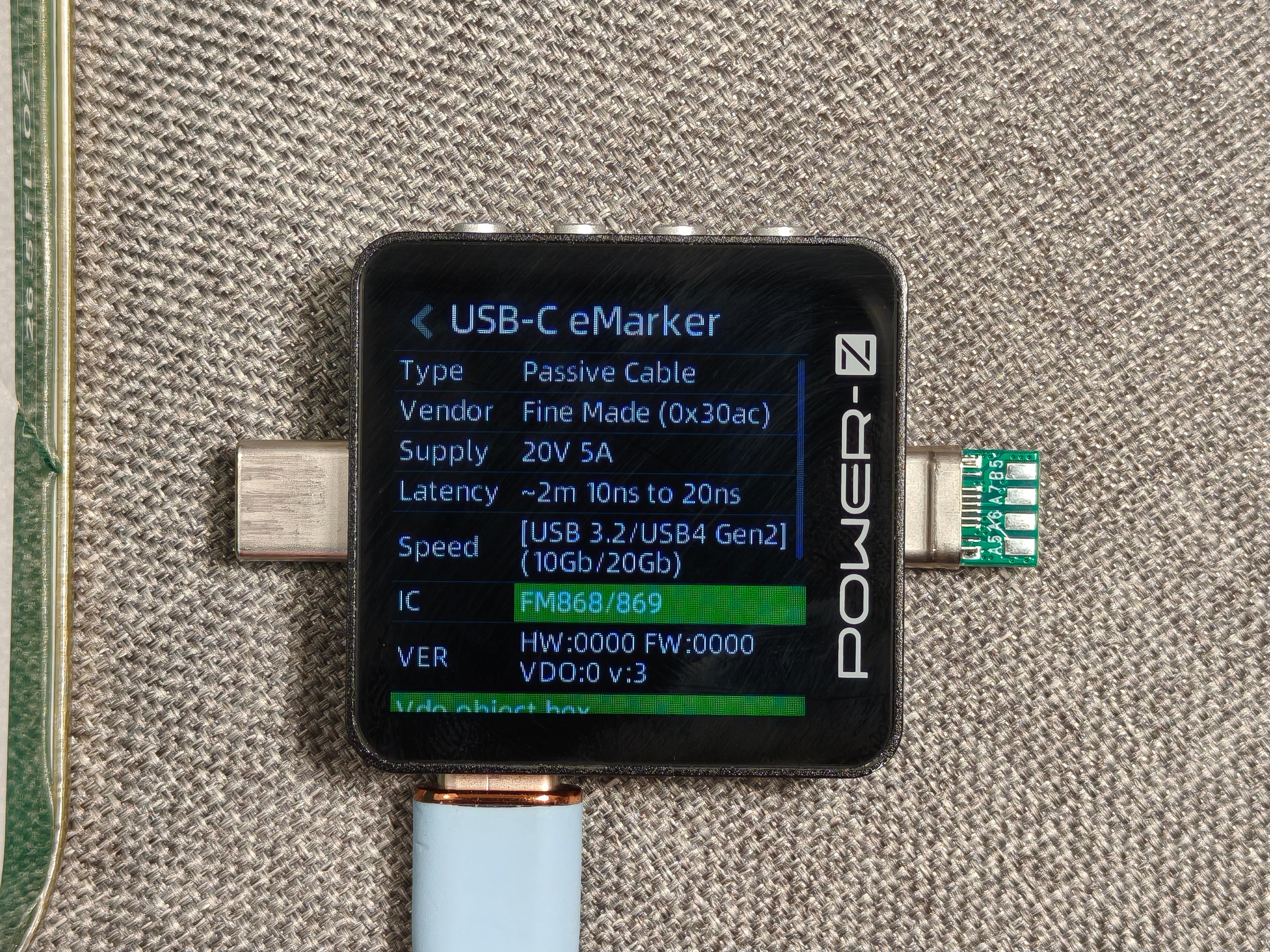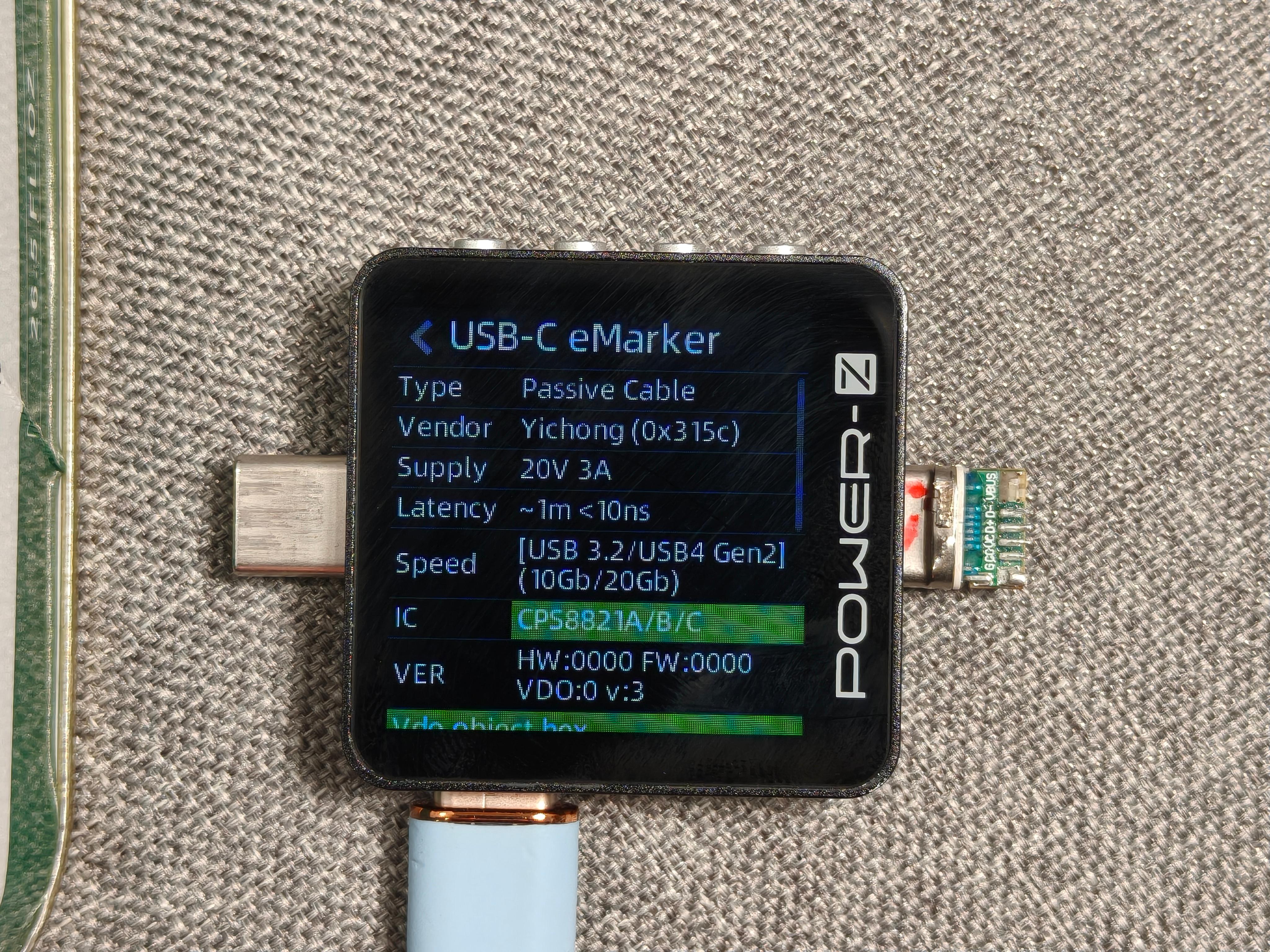 近日,POWER-Z KM003C迎来2.0.0固件版本重磅更新,新增多项功能,其中,全新升级的 USB-C eMarker 读取功能成为线材质检利器,通过该功能,不仅可以解析eMarker线缆功率、速率等基础参数,也可以直接读取并显示 eMarker 芯片的具体 IC 型号,无需拆壳、无需复杂工具,让线材 “内核” 一目了然。