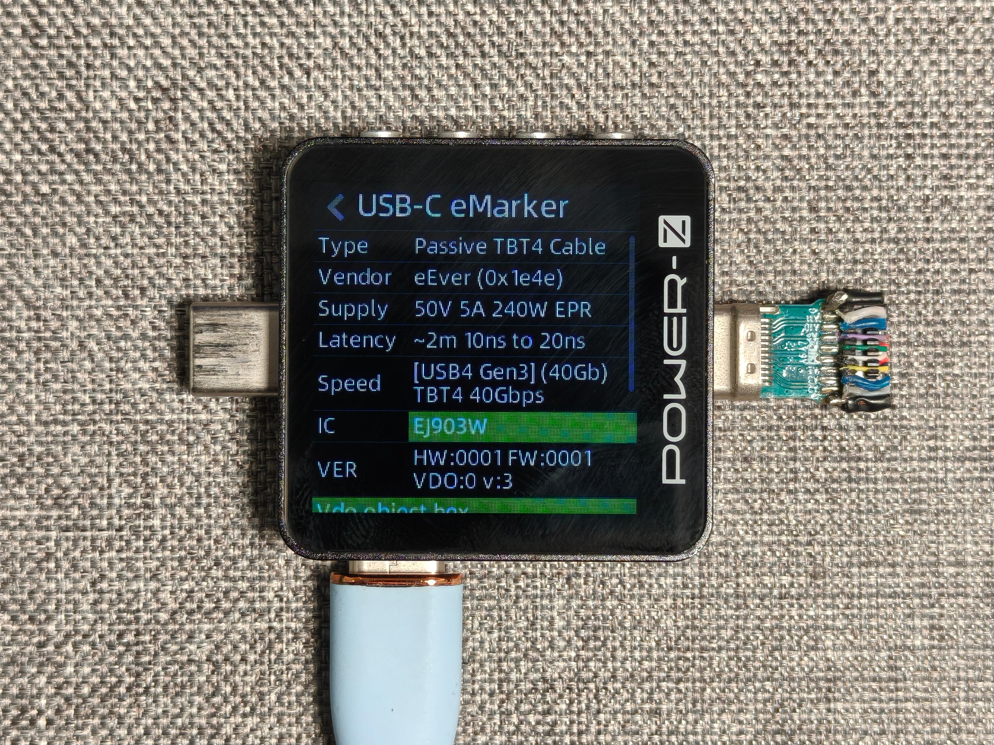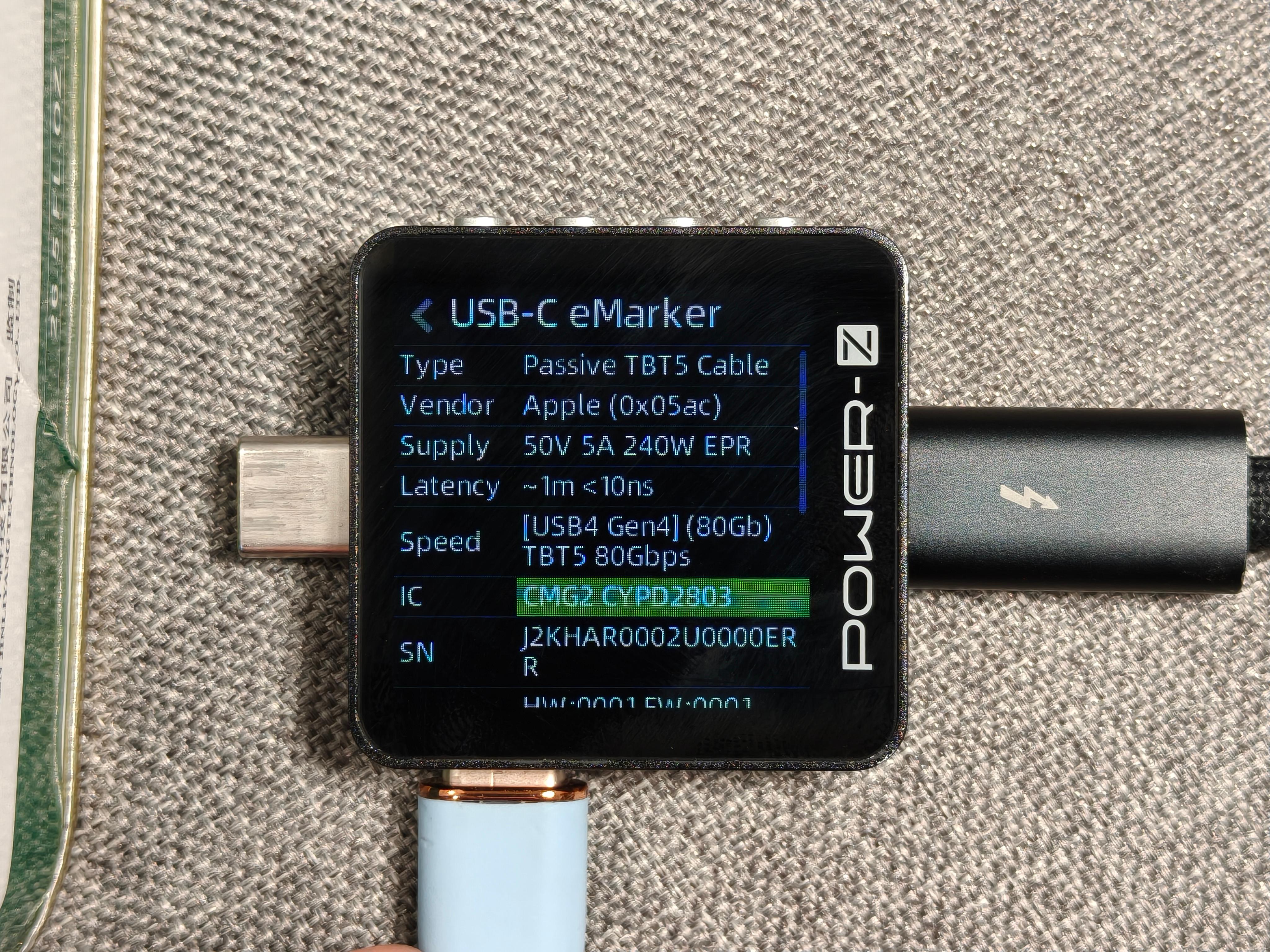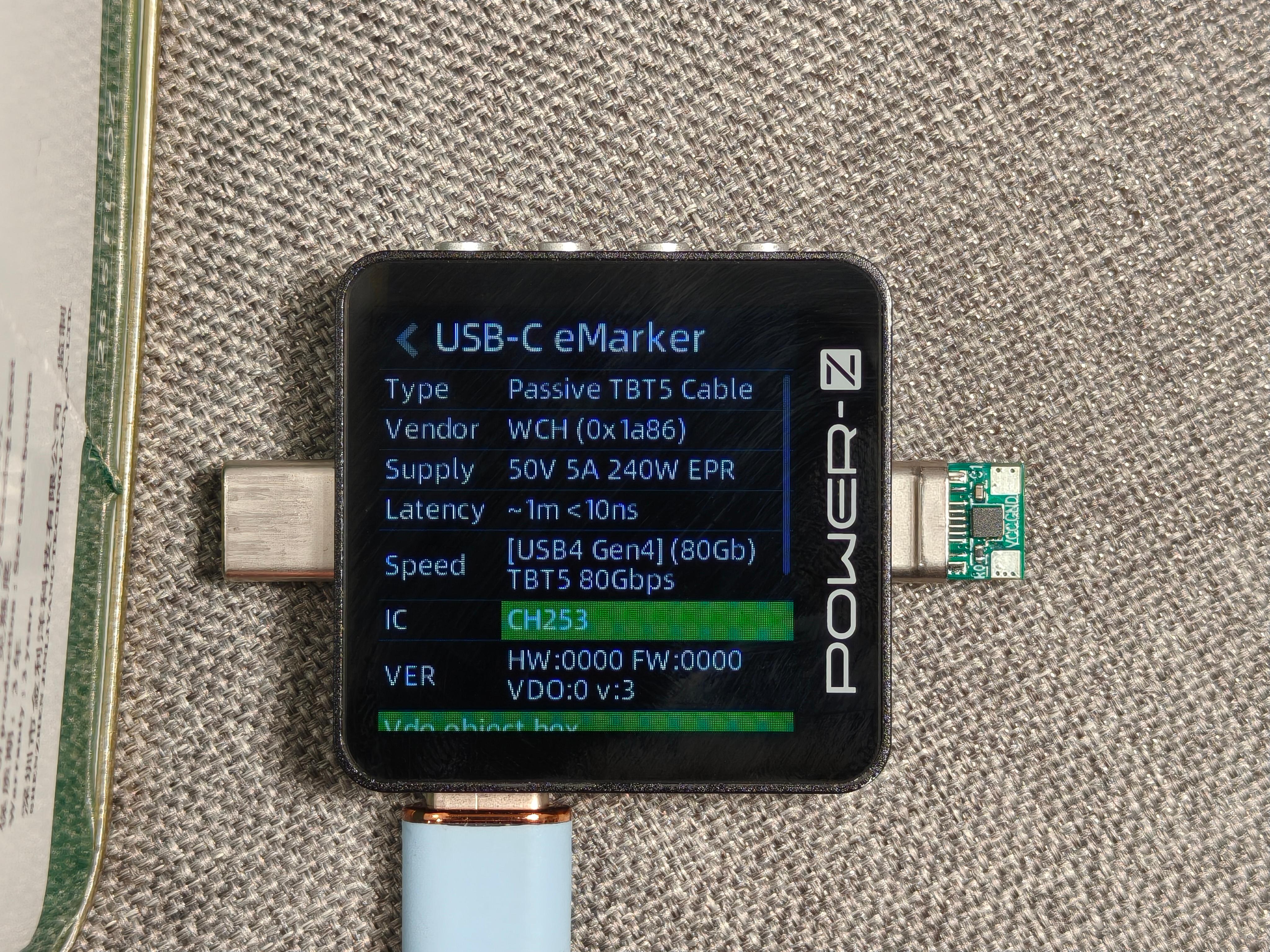 近日,POWER-Z KM003C迎来2.0.0固件版本重磅更新,新增多项功能,其中,全新升级的 USB-C eMarker 读取功能成为线材质检利器,通过该功能,不仅可以解析eMarker线缆功率、速率等基础参数,也可以直接读取并显示 eMarker 芯片的具体 IC 型号,无需拆壳、无需复杂工具,让线材 “内核” 一目了然。