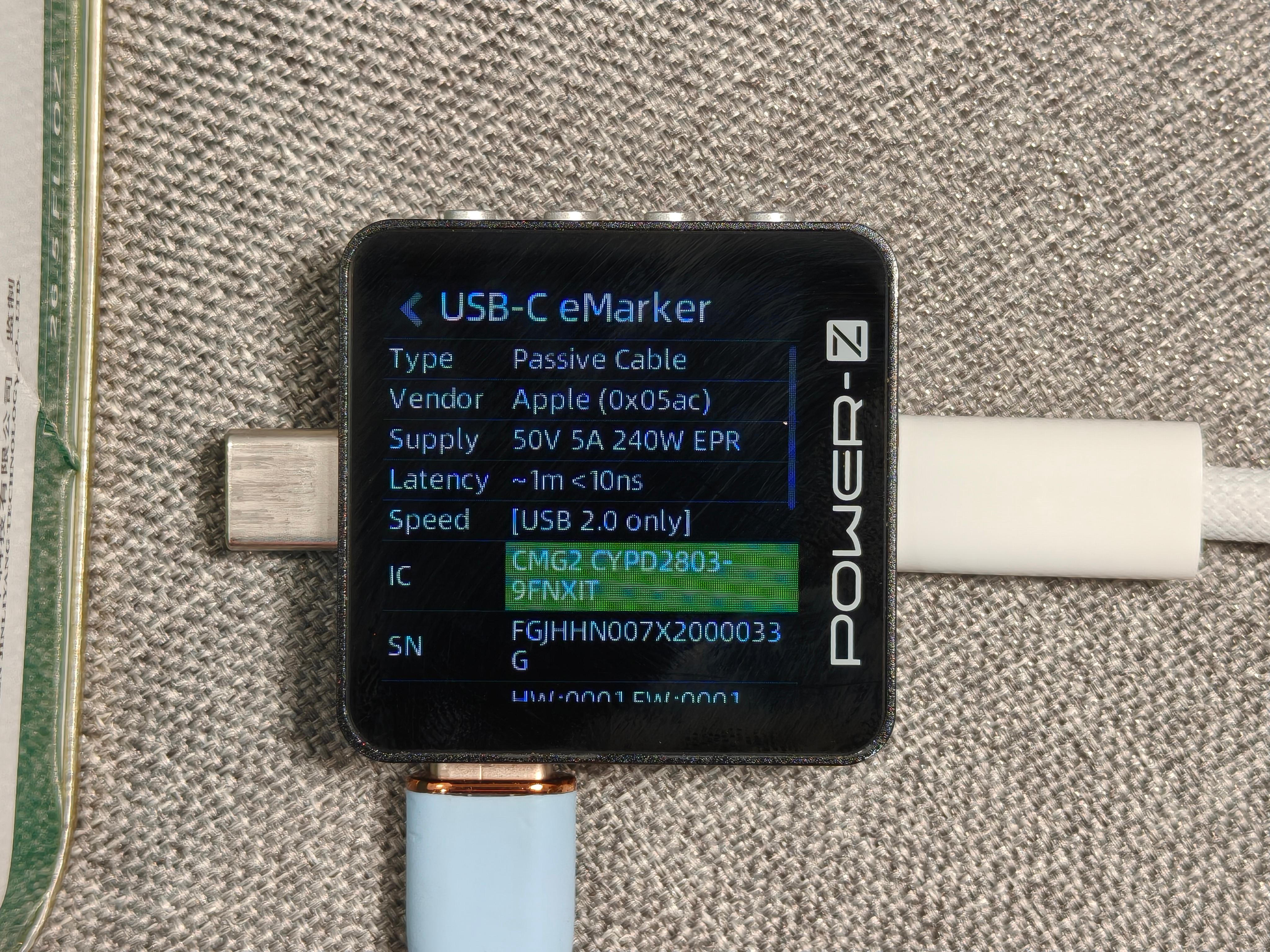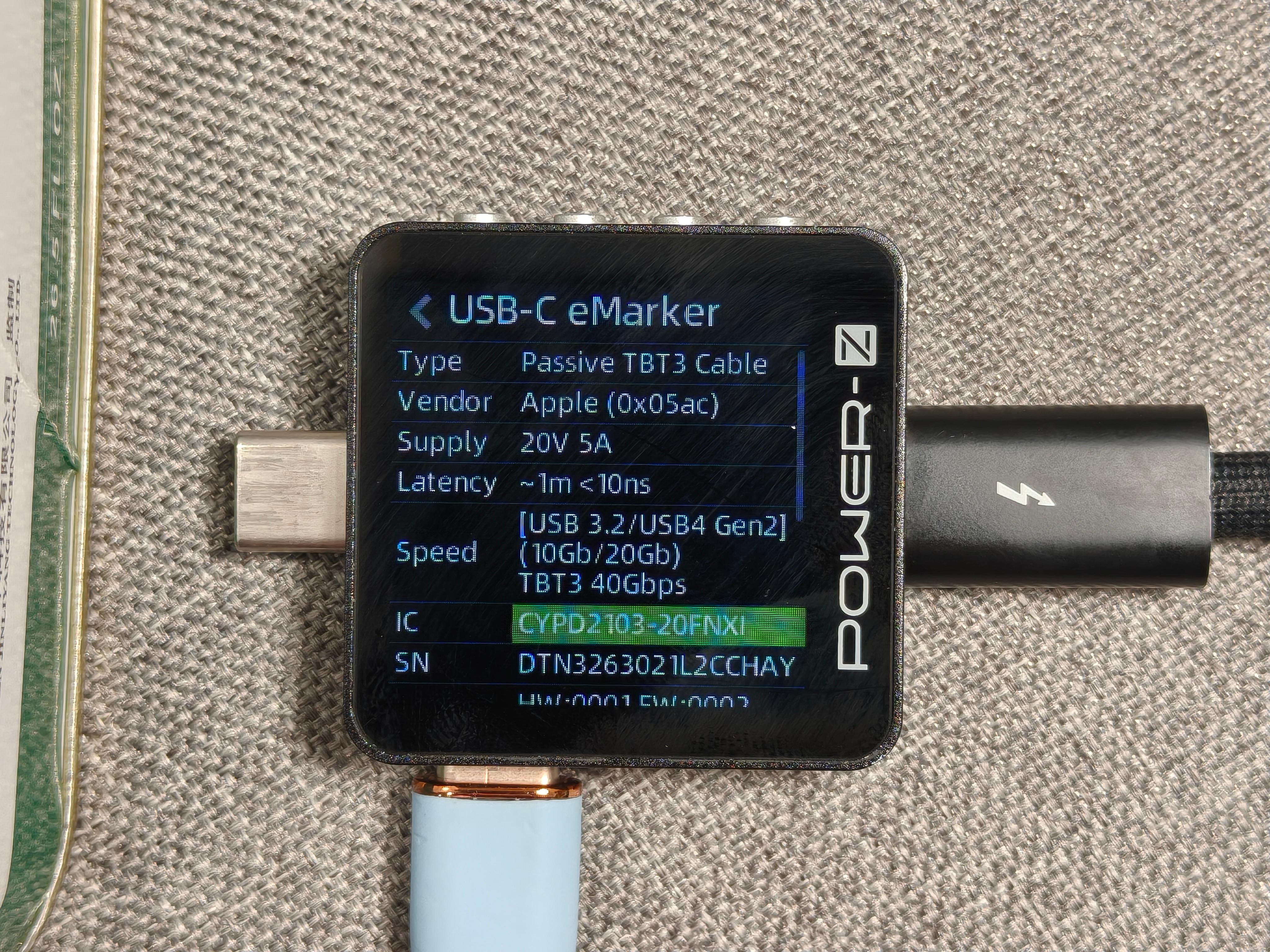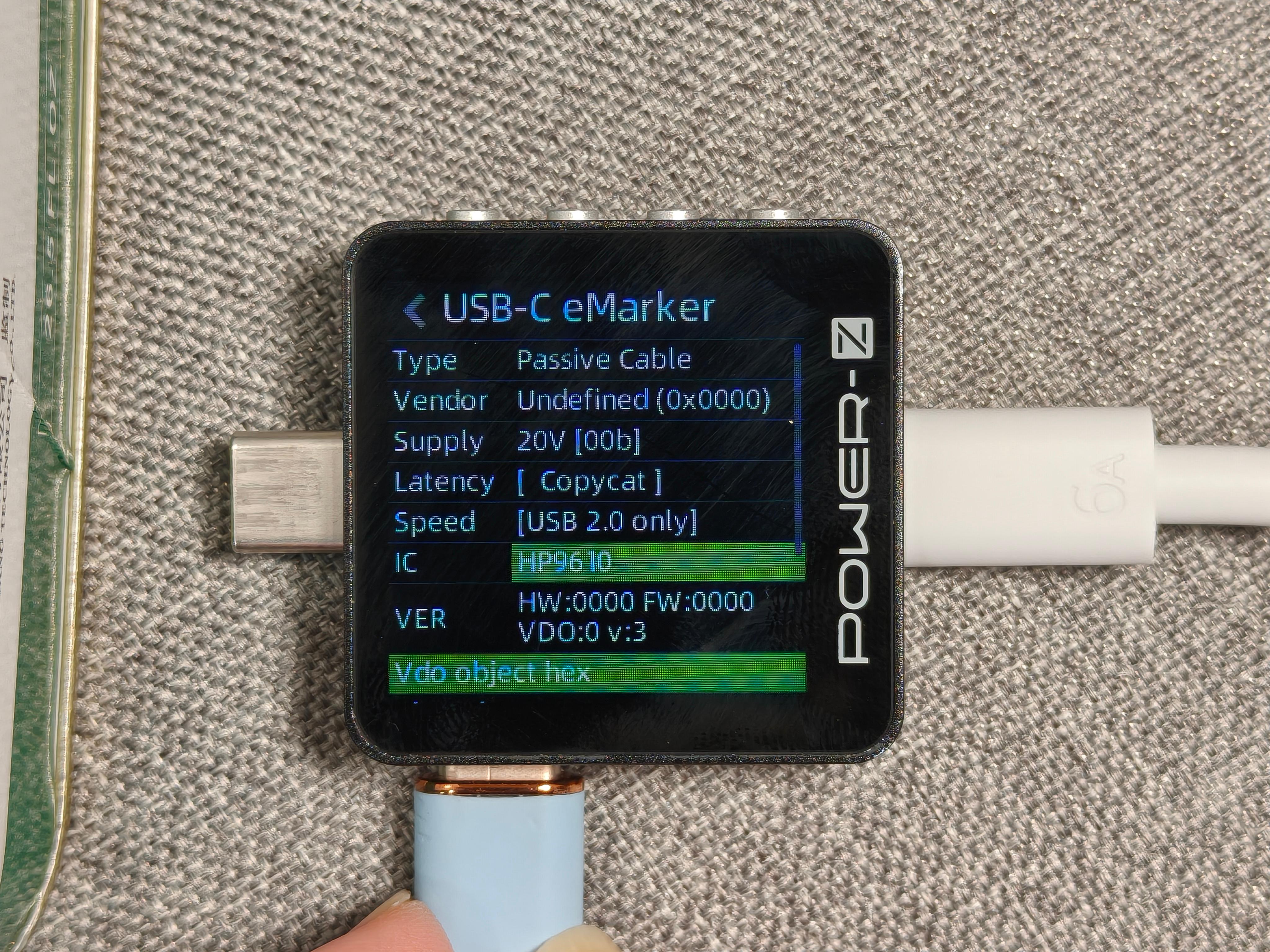 【本次POWER-Z KM003C实测eMarker的IC读取结果】
