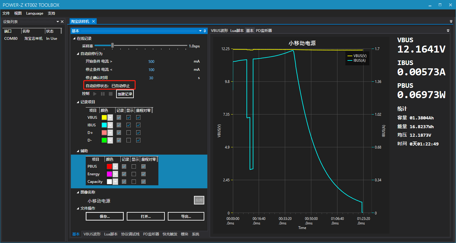 ChargerLAB POWER-Z KT002使用小技巧:上位机记录曲线图与离线数据导出