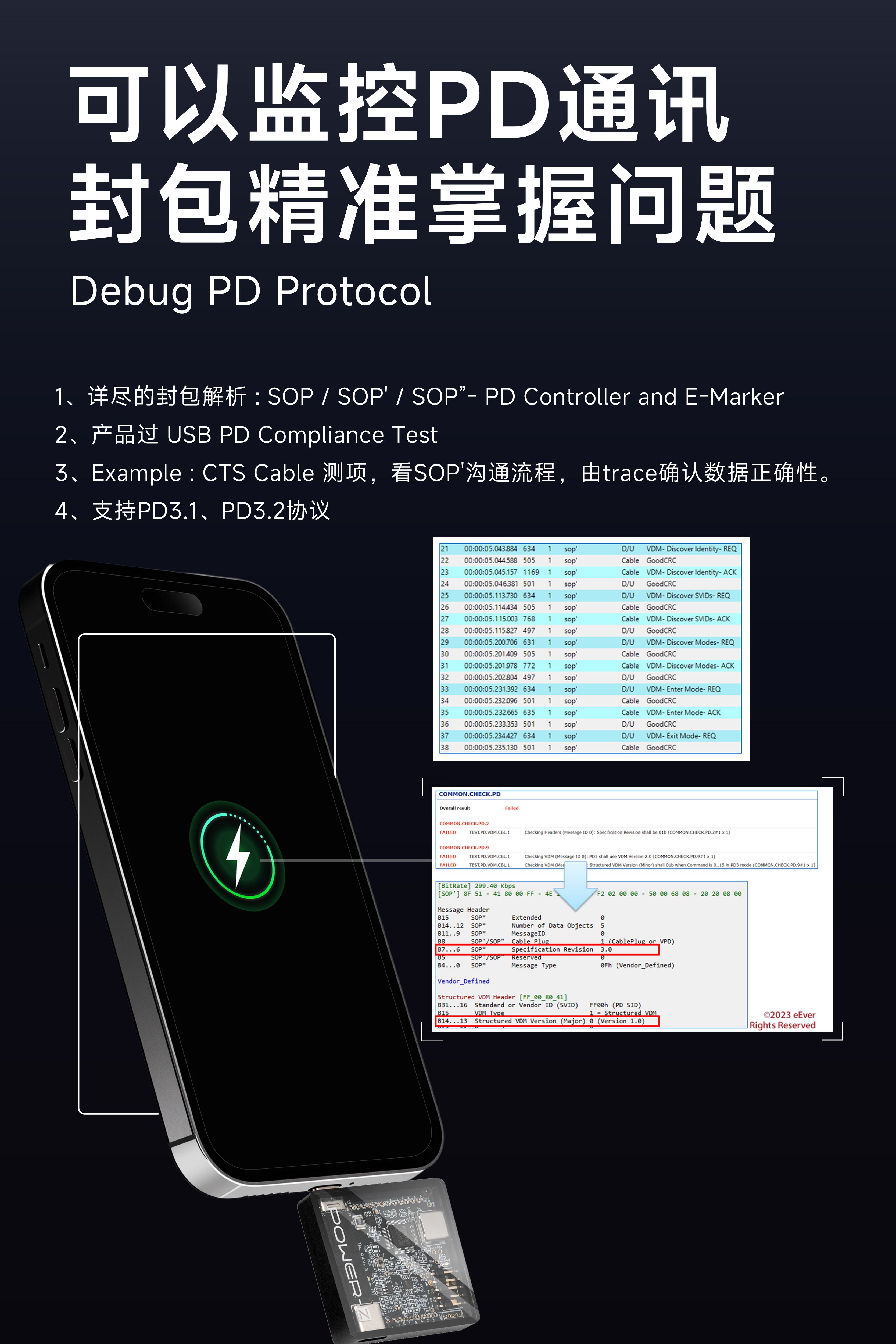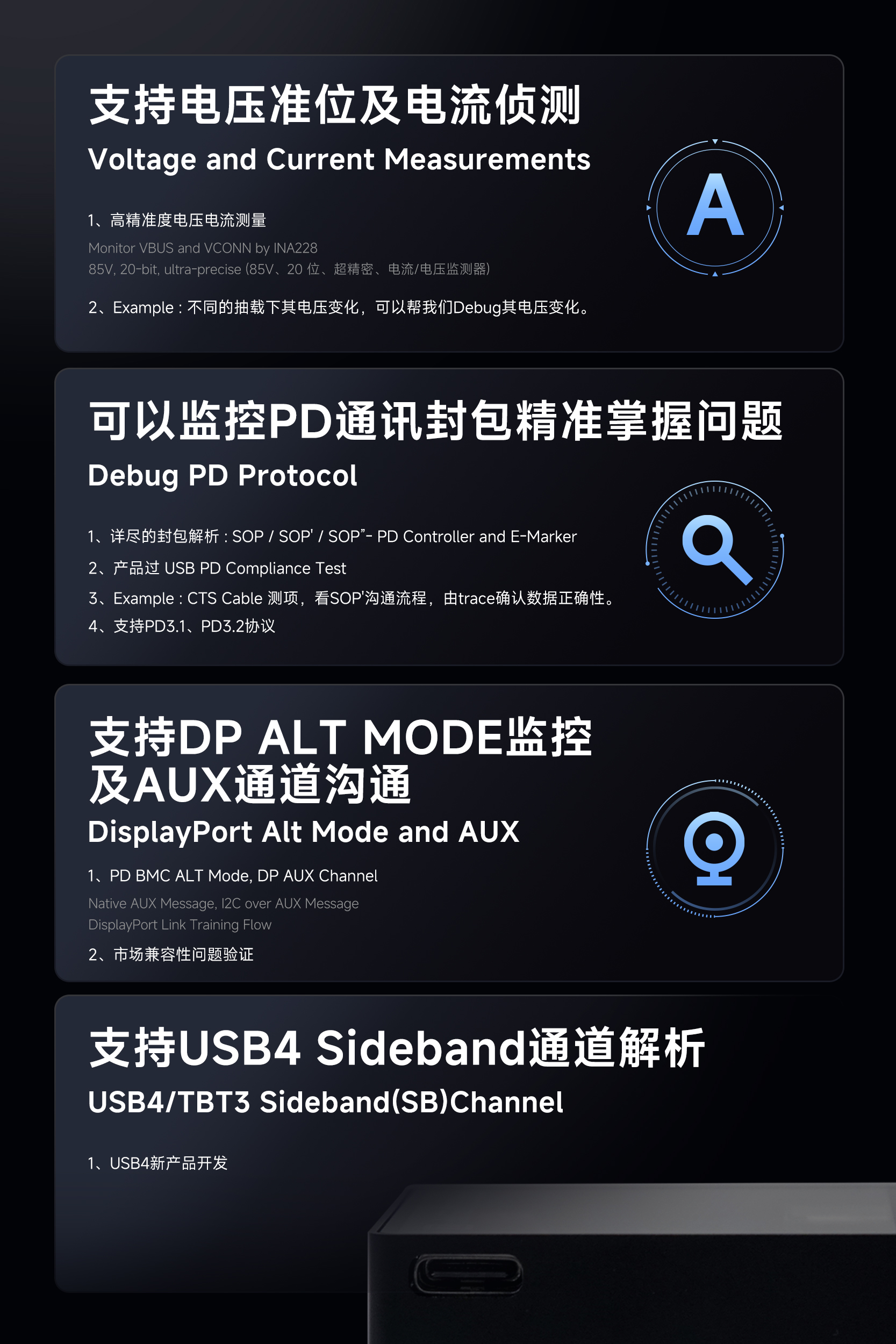 CAHRGERLAB POWER-Z ET240协议逻辑分析仪PD包解码DP消息USB4边带消息