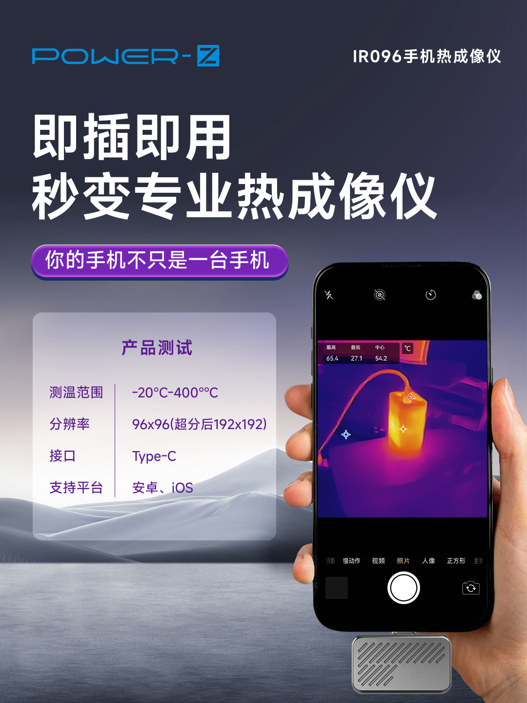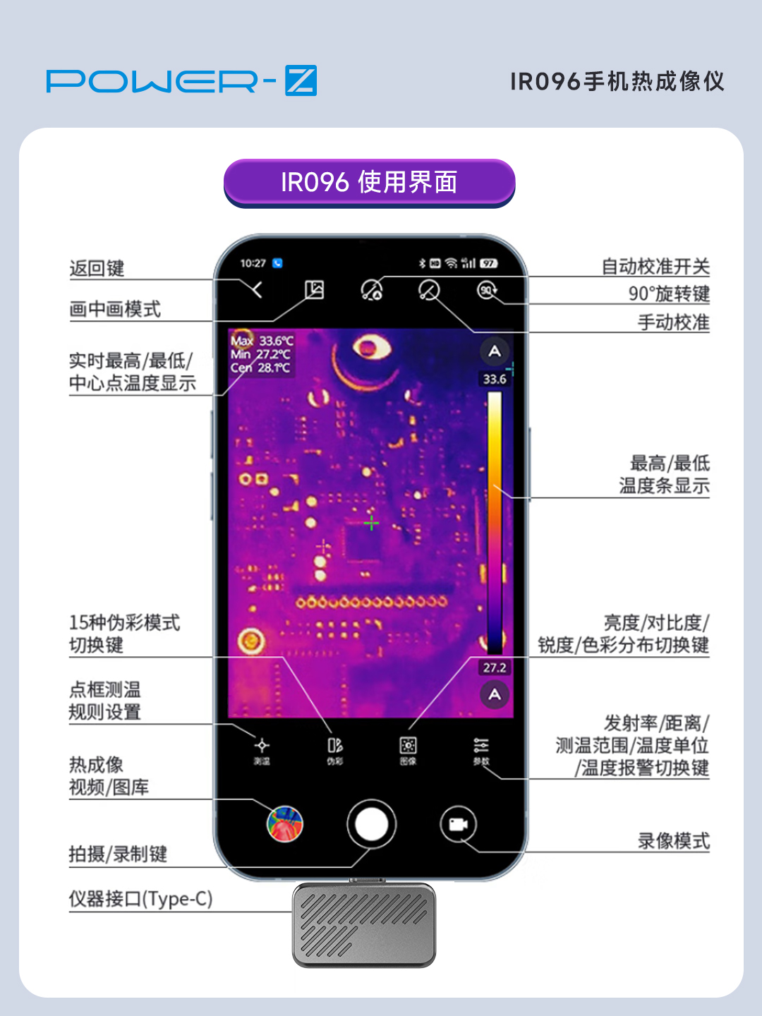POWER-Z IR096手机热成像仪手机工具配件支持安卓iOS系统手机软件